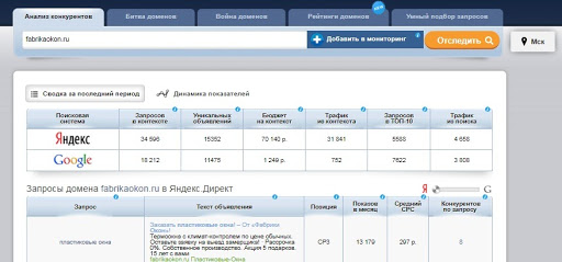К примеру проведём конкурентный анализ в контексте - анализ в поиске полностью аналогичен.
